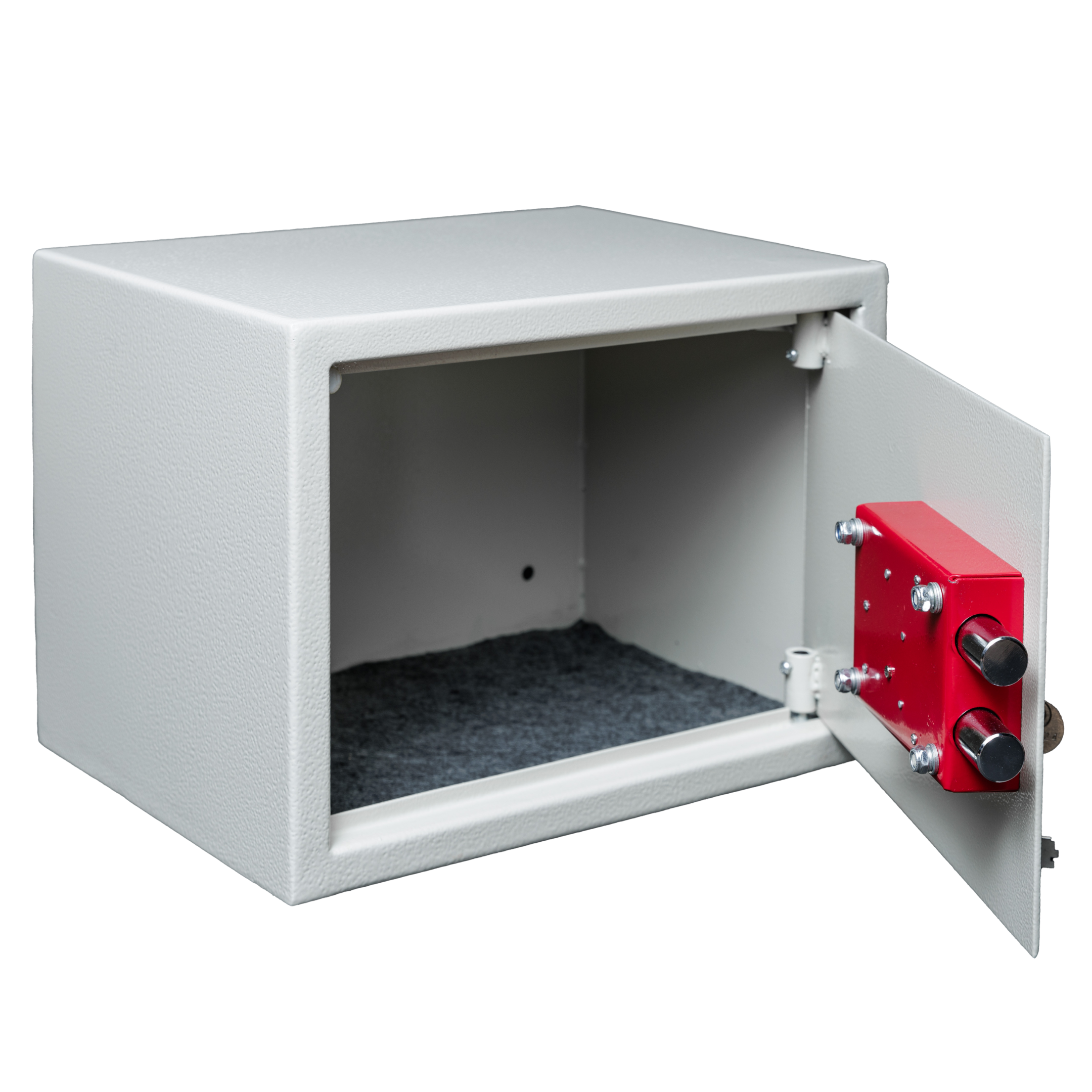 - Construcción robusta en acero al carbono, con bisagras ocultas y puerta gruesa anti-palanca.